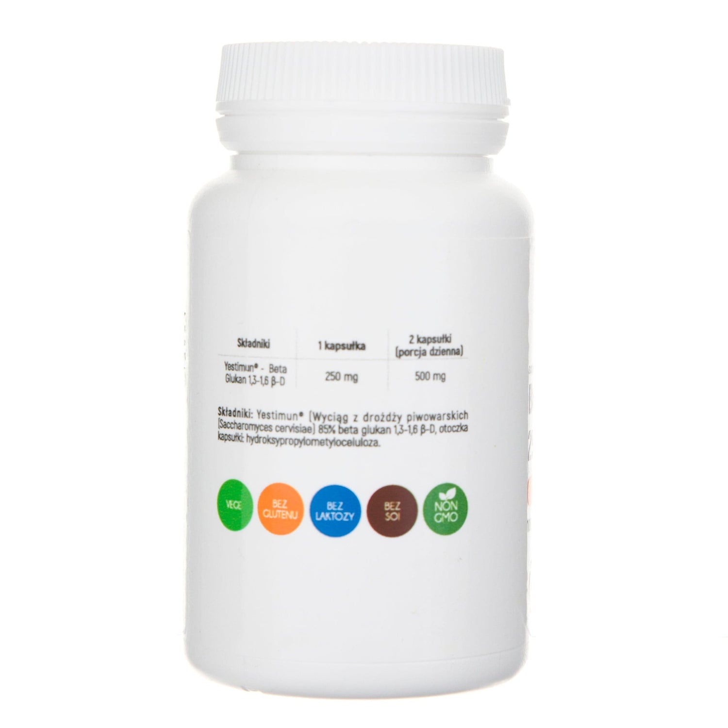 Yestimun ® ( Biergistextract ( Saccharomyces cervisiae ) 85% beta 1 , 3-1 , 6 β-D glucan , capsulehuls: ( bindmiddel: hydroxypropylmethylcellulose ) .