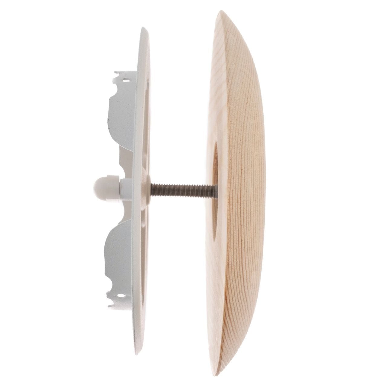 De Bilovit Pine Anemostat voor sauna's is een ronde ventilatieklep die de luchtverversing in de saunacabine regelt. De voorkant is gemaakt van natuurlijk dennenhout , met een metalen frame – past op standaard 100 mm ventilatieopeningen. Kan aan de muur of het plafond worden bevestigd.