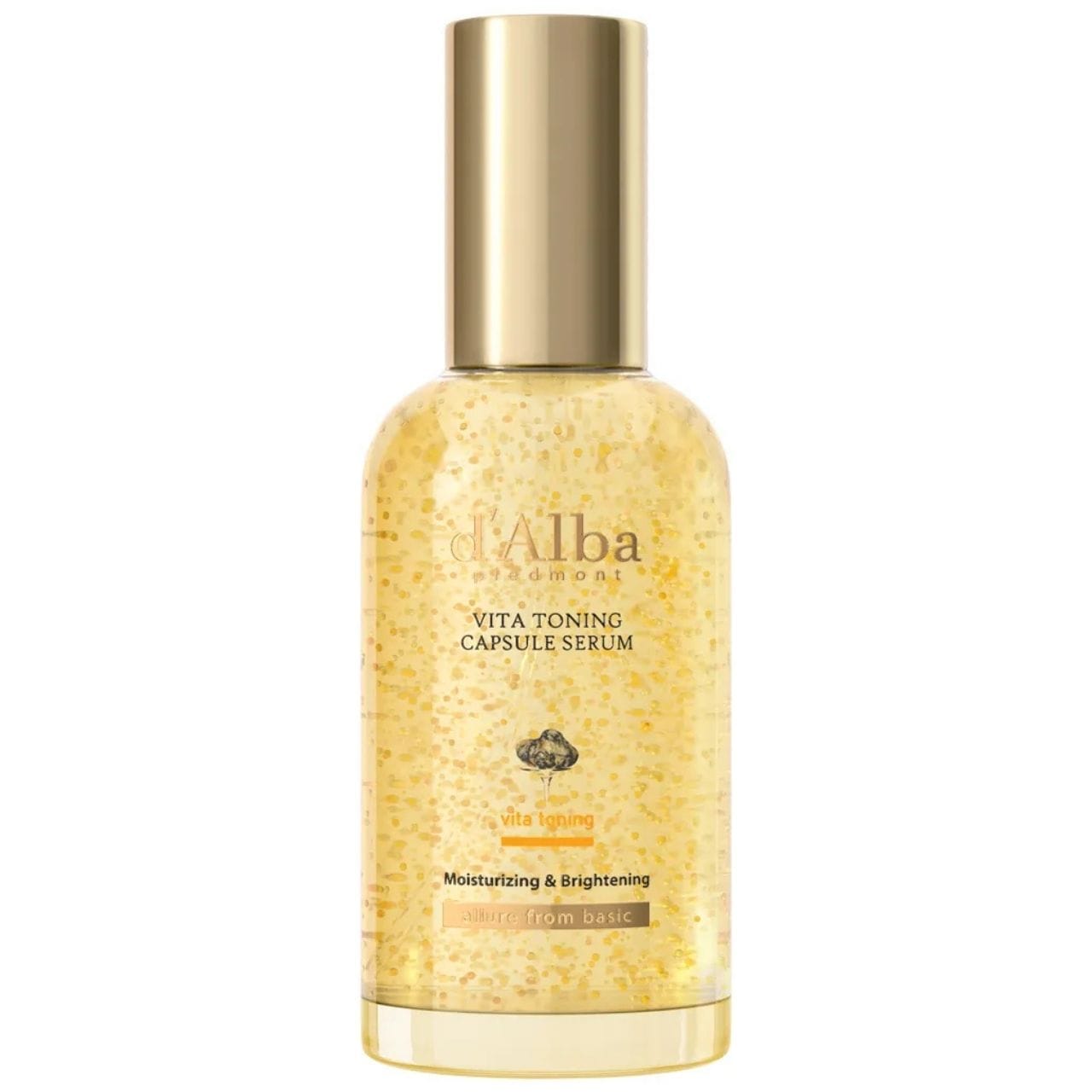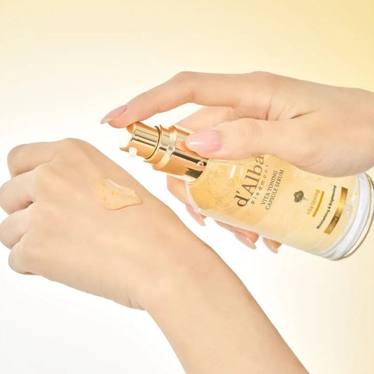 Serum D'Alba Vita Toning to baanbrekende formule op basis van puur duindoornwater dat de huid voorziet van natuurlijke vitamine-energie. De unieke 40,000 vitaminecapsules die tijdens het aanbrengen vrijkomen, zorgen voor intensieve voeding en een onmiddellijk verhelderend effect. Het geavanceerde Vitality Complex combineert hydraterende, regenererende en anti-aging actieve ingrediënten die synergetisch van binnenuit werken.