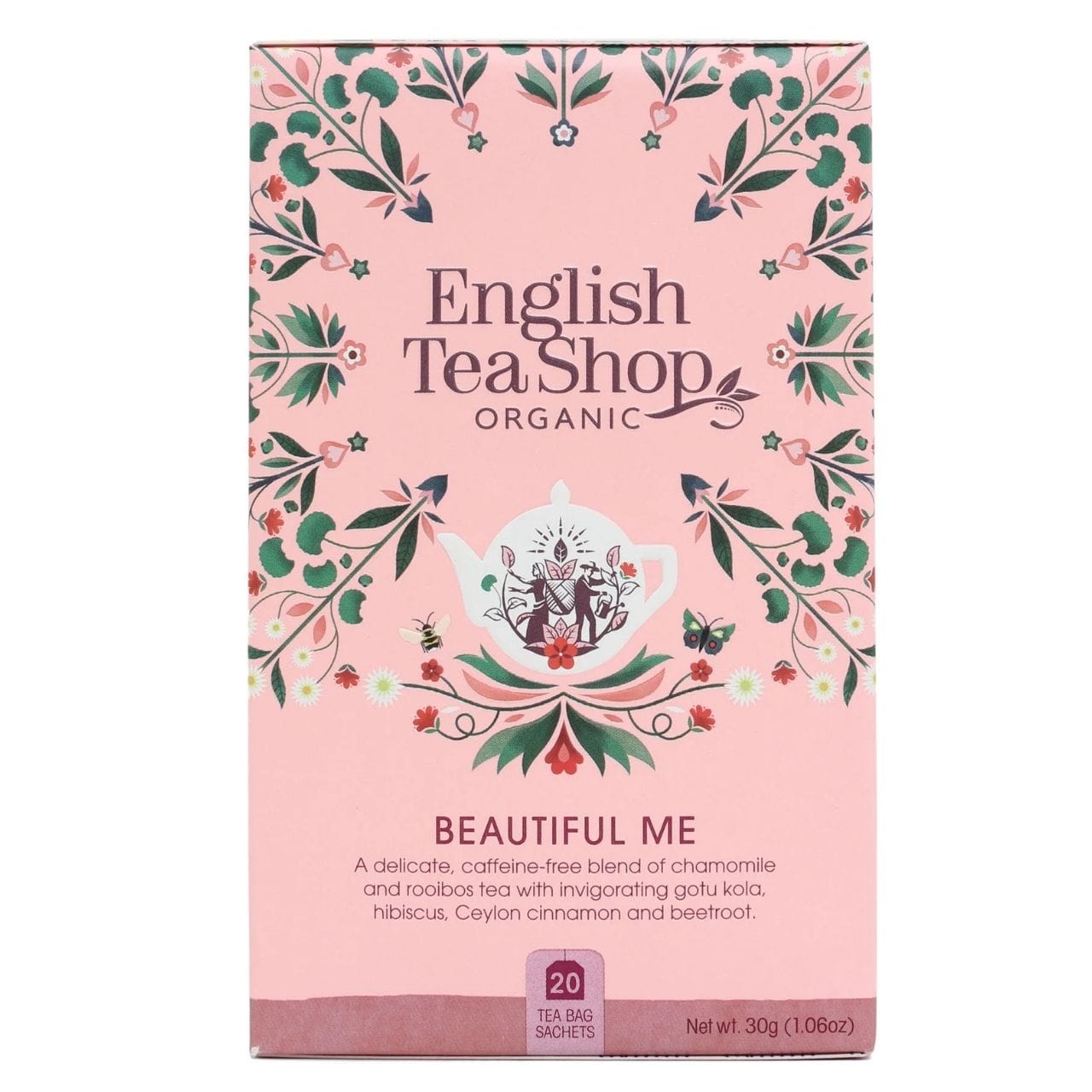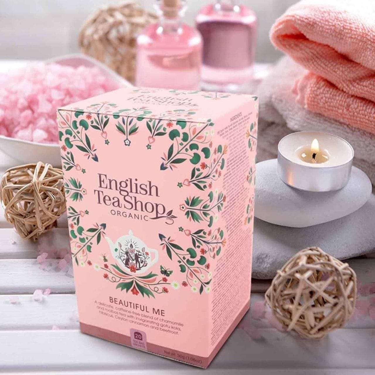 Voel je mooi van binnen en van buiten! English Tea Shop Beautiful Me is een cafeïnevrije, biologische melange die milde kamille combineert met reinigende gotu kola.