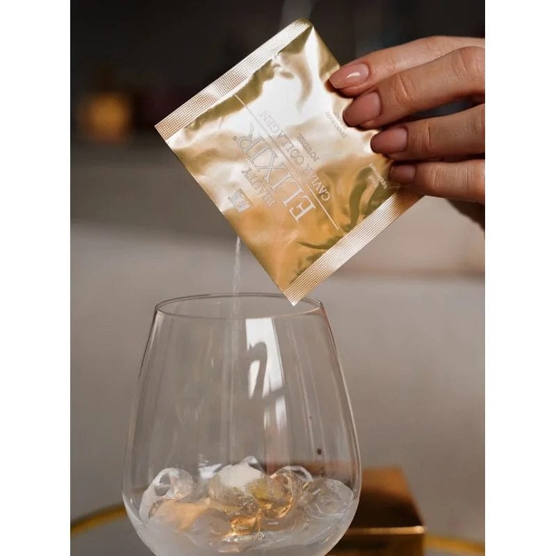 Fitness Authority Beauty Elixir Caviar Collagenis een voedingssupplement poeder. Bij de productie van Beauty Elixir Caviar Collagen is gebruik gemaakt van het gepatenteerde seawater viscollageen Peptan® F, afkomstig uit Frankrijk. Gehydrolyseerd Peptan® F collageen is een viscollageenpeptide met een biologische beschikbaarheid van meer dan 90% door het lichaam. Het product bevat maar liefst 6500 mg Peptan® F,kaviaar extract, hyaluronzuur, evenals andere ingrediënten die een positief effect hebben op het lichaam, waaronder vitamine C, die helpt bij een goede aanmaak van collageen, zink en selenium. Dit alles zorgt voor een unieke combinatie van actieve ingrediënten in een handige, oplosbare vorm.