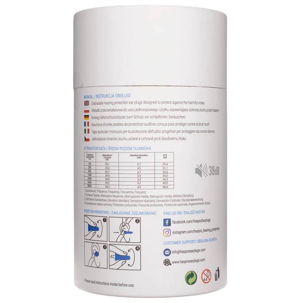Haspro Tube50 is een moderne buisvormige verpakking met 50 paar wegwerpoordopjes van comfortabel en uiterst zacht polyurethaanschuim, dat in minder dan een minuut heel gemakkelijk in elk oor past. Bovendien wordt elke set geleverd met een klein doosje om de oordopjes in te bewaren.