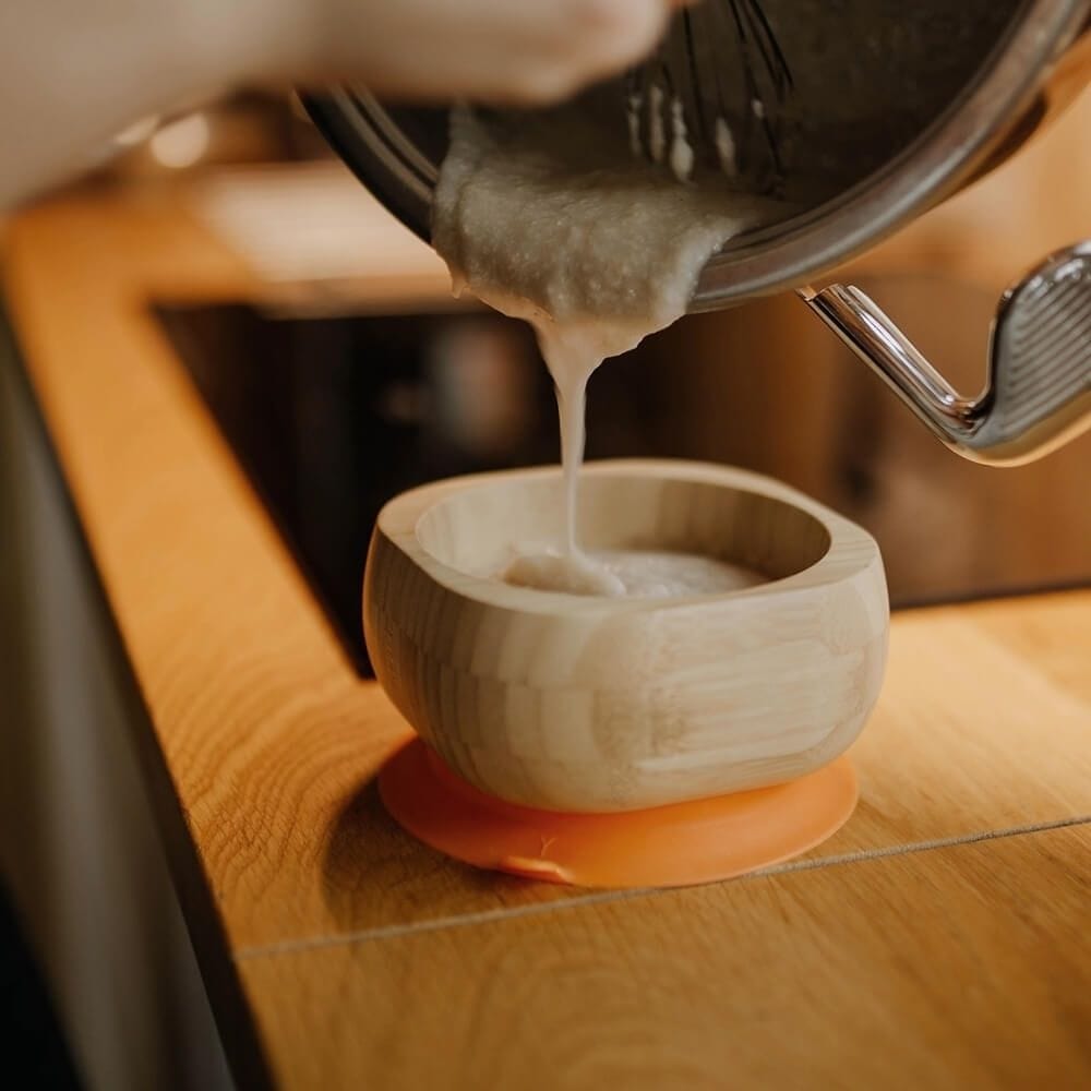 Biologische gierstpap 55%, biologische haverpap 45%.