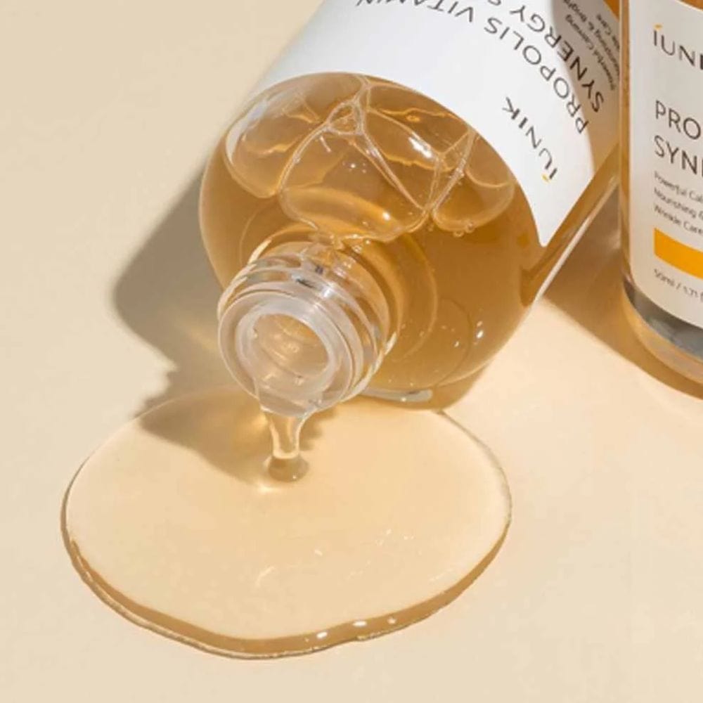 IUNIK Propolis Vitamin Synergy Serum is een innovatief versterkend serum dat gebruikmaakt van de synergetische effecten van propolis en duindoorn-extracten. De formule bevat hoge concentraties actieve ingrediënten die de conditie van de huid op een uitgebreide manier verzorgen, van het versterken van de beschermende barrière tot het verhelderen en egaliseren van de teint.