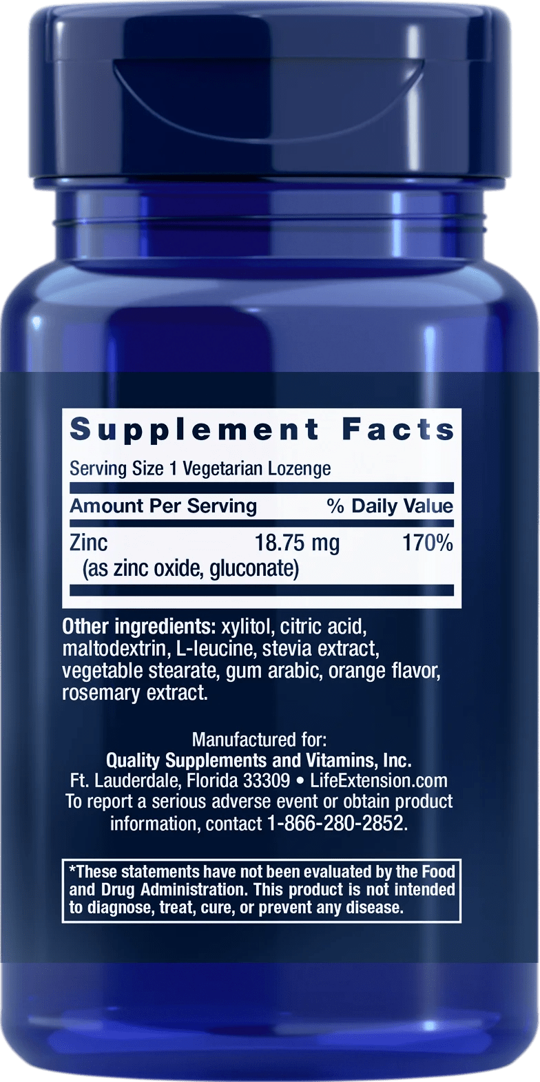 Zinkpastilles van Life Extension is een voedingssupplement in zuigtabletten met een citrusoranje smaak , die zink bevatten in de vorm van zinkoxide en zinkgluconaat.