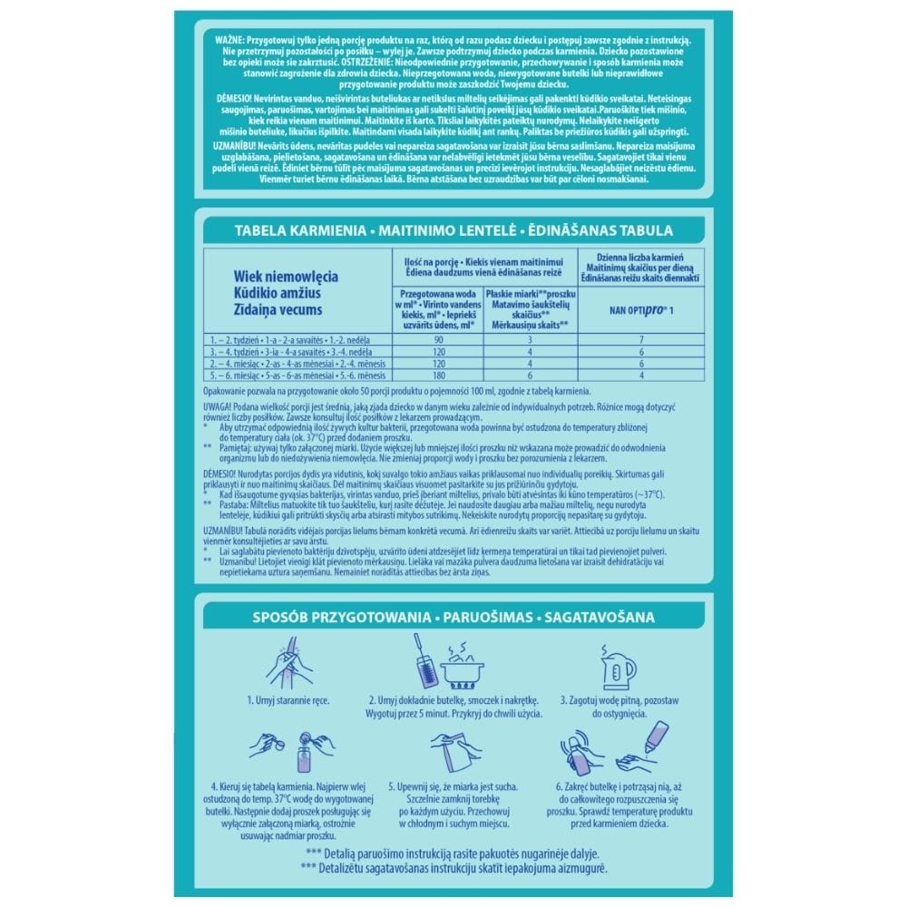 NAN OPTIpro 1 is een startmelk die speciaal is samengesteld voor de behoeften van zuigelingen vanaf dag 1. Geschikt als vervanging voor moedermelk of als aanvulling op borstvoeding. Deze startmelk bevat alle voedingsstoffen die nodig zijn voor een goede ontwikkeling van uw kind.