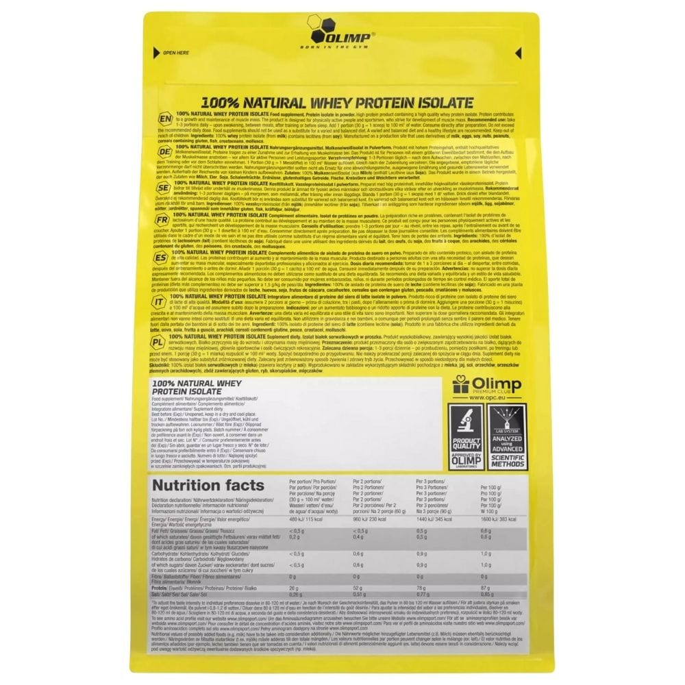 Olimp 100% Natural Whey Protein Isolate eigenschappen:
