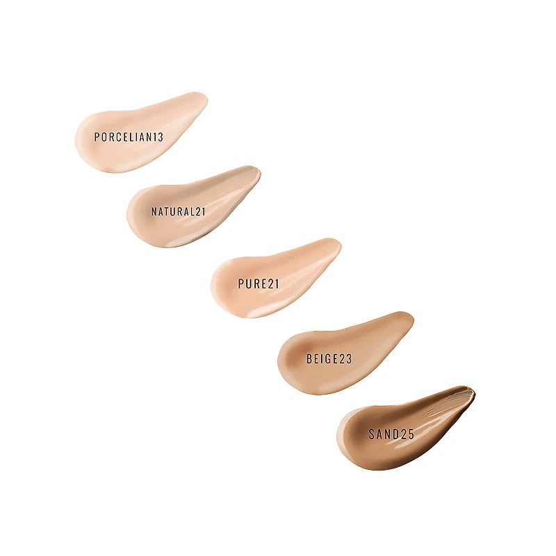 Aqua, Cyclopentasiloxaan, Titaandioxide, Methyl Trimethicone, Propanediol, Butyloctyl Salicylate, PEG-10 Dimethicone, Dimethicone, Niacinamide, Trimethylsiloxysilicaat, Isododecaan, Trisiloxaan, Magnesiumsulfaat, Methylmethacrylaat-crosspolymeer, Ethylhexylmethoxycinnamaat, Lauryl PEG-10 Tris (Trimethylsiloxy) silylethyl Dimethicone, Disteardimonium Hectorite,1,2-Hexaandiol, Difenyldimethicone/Vinyldifenyldimethicone/Silsesquioxaan-crosspolymeer, Caprylic/Capric Glycerides, Polymethylsilsesquioxane, Geel ijzer Oxide (Ci 77492), Aluminiumhydroxide, Triethoxycaprylylsilaan, Rode ijzeroxide (Ci 77491), Butyleenglycol, Polysilicone-11, Adenosine, Zwart ijzeroxide (Ci 77499), Polyglutaminezuur, Chamaecyparis Obtusa Water, Tocoferol, Hyaluronzuur, Parfum, Titaandioxide (Ci 77891).