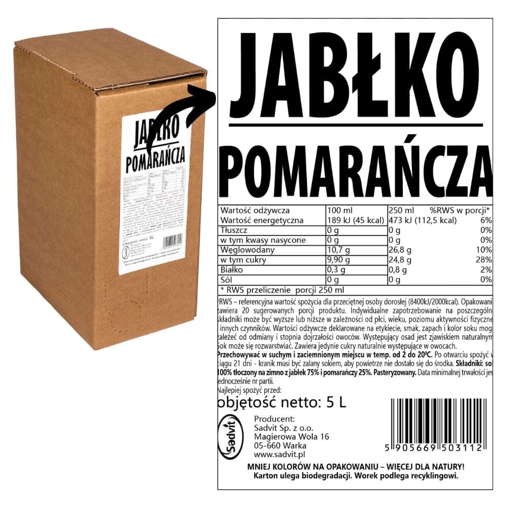 DRINKME appel- en sinaasappelsap is een 100% natuurlijke drank die de zoetheid van lokale appels uit het district Grójec combineert met de frisheid van sinaasappelsap. Koudgeperst, zonder toevoegingen of concentraten, behoudt het de volle smaak en voedingswaarde van het fruit.