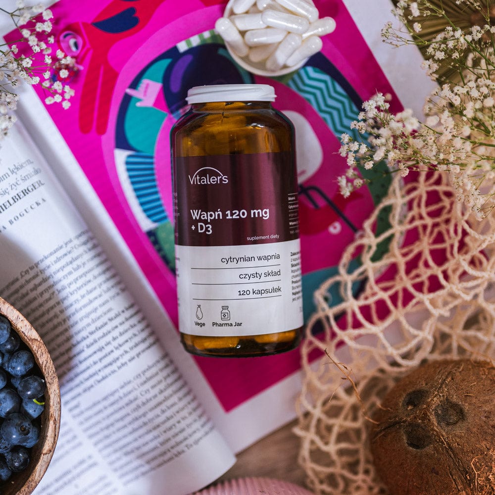 Vitaler's Calcium 120 mg + D3 voedingssupplement combineert een organische vorm van calcium en vitamine D3, die beide de gunstige effecten op de botstructuur aanzienlijk vergroten. Het calciumcitraat dat in de formule wordt gebruikt is een vorm die het risico op nierstenen niet verhoogt en die veel beter wordt opgenomen dan calciumcarbonaat. Calcium in deze vorm kan zelfs gebruikt worden door mensen die medicijnen nemen die de maagsapsecretie verminderen. Het voedingssupplement, is dankzij het vitamine D3 gehalte, in staat om het risico op fracturen, verlies van botmassa, te verminderen en kan tegelijkertijd een gunstig effect hebben op het algehele welzijn van postmenopauzale vrouwen.
