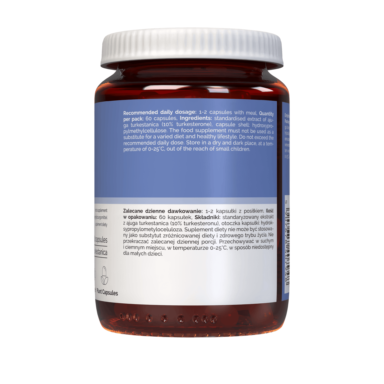 Gestandaardiseerd extract van Ajuga turkestanica (10% turkesteron), capsulehuls (hydroxypropylmethylcellulose).